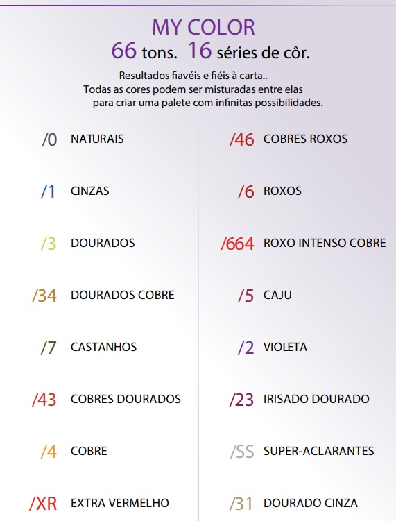A inovadora fórmula MY COLOR Sem amoníaco, Sem parafenilendiamina (PPd) Sem cheiro e comprovado dermatológicamente.
